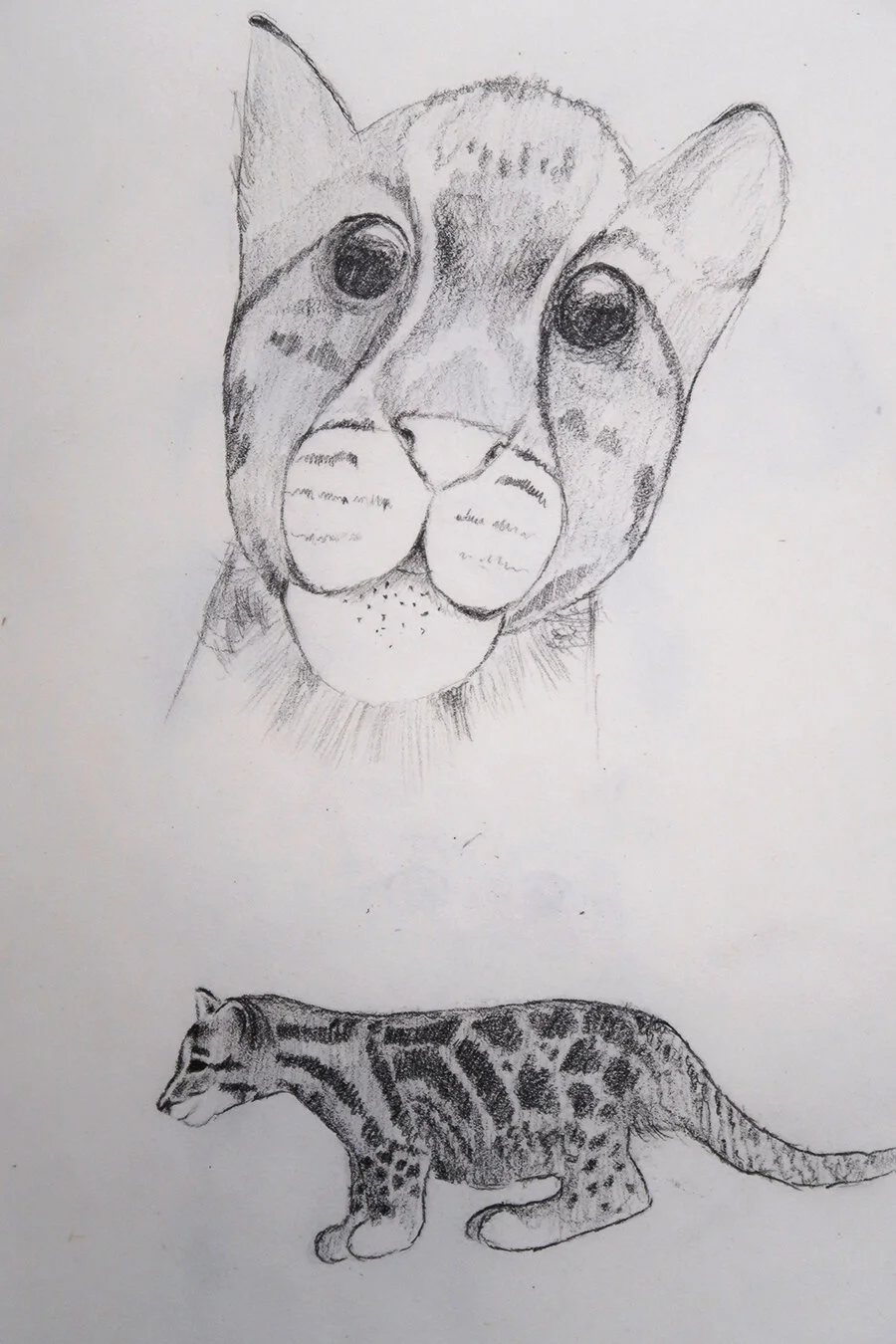 And also, there are small cats, big cats, domestic cats, wild cats. Do you know clouded leopard? It’s a very cute being. The cubs are cute even the grown up one. It’s not as big as the other leopard. And what makes it looks cuter is their paws. Big and chubby. Super cute. But don’t judge them from my drawings. As it hasn’t do them justice yet.